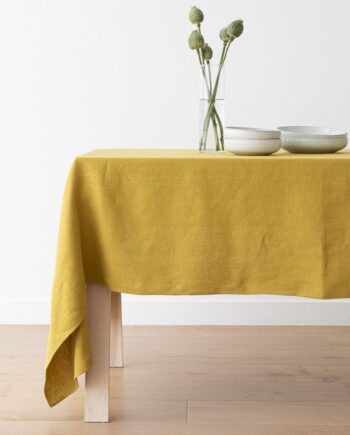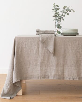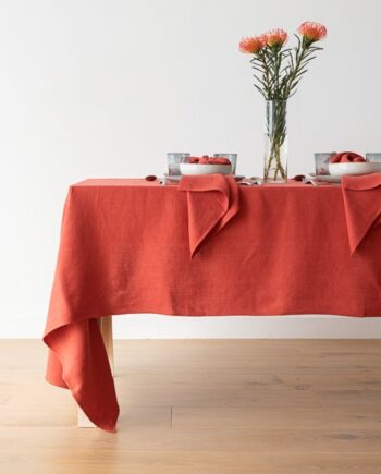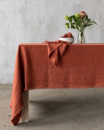 Mantel de lino brick Terra con flecos hechos a mano